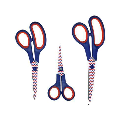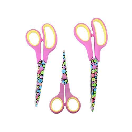 O Kit Tesouras Estampadas NYBC oferece três tesouras decorativas com diferentes comprimentos, perfeitas para usos diversos: costura, artesanato ou uso doméstico. Cada tesoura possui cabo estampado, lâminas em aço inoxidável e parte das alças em material plástico ou siliconado para conforto.