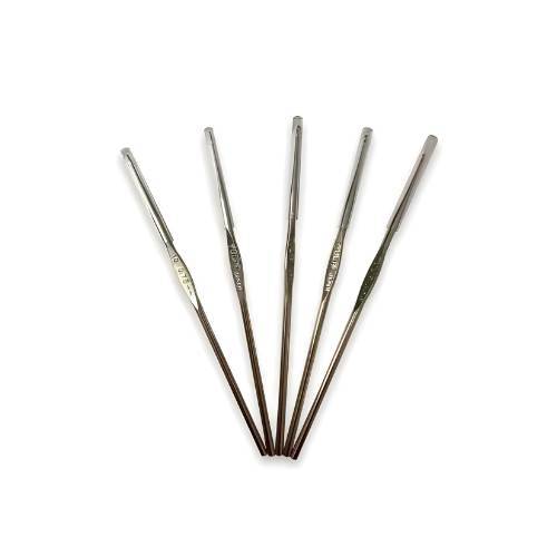 A Agulha de Crochê de Aço Niquelado Círculo oferece precisão e durabilidade para artesãs que trabalham com fios finos. Com acabamento em aço niquelado, garante brilho, resistência à ferrugem e excelente deslize do fio.